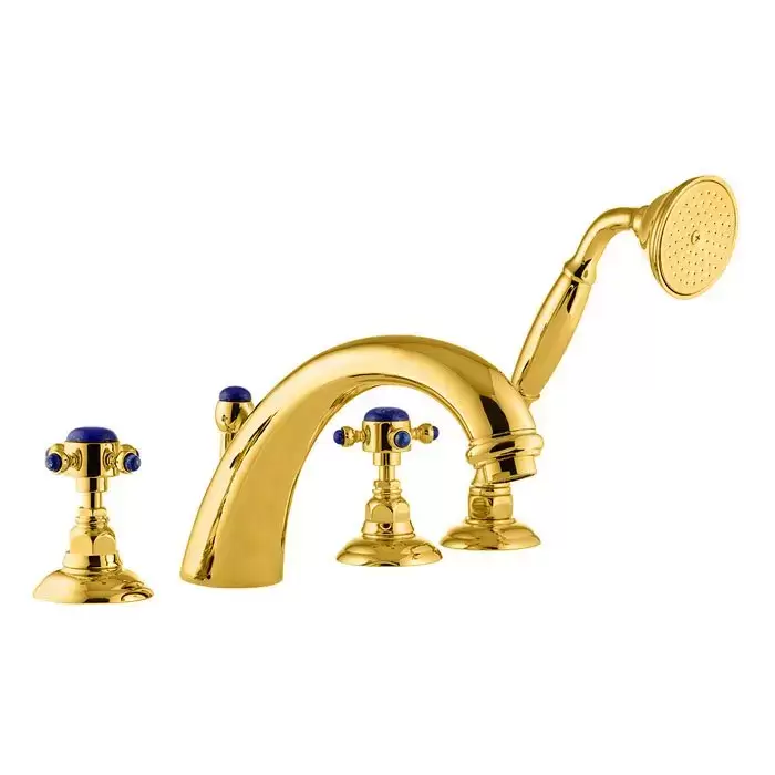 Nicolazzi Le Pietre Смеситель на борт ванны, 4 отв., излив: 223 мм, с ручным душем, цвет: золото