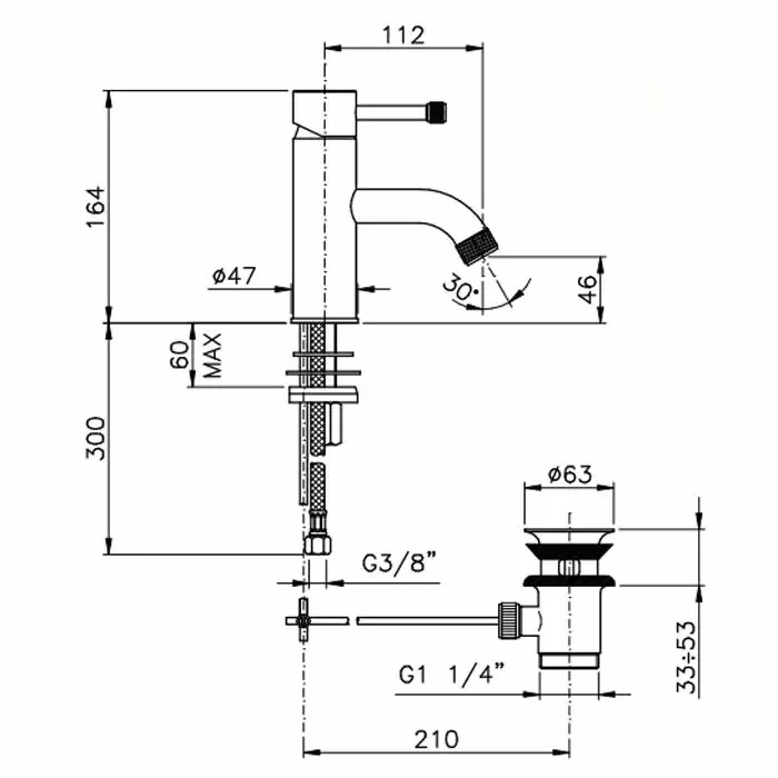 Nicolazzi Leva Arena Смеситель для раковины на 1 отверстие, с донным клапаном, излив: 112мм, цвет: хром
