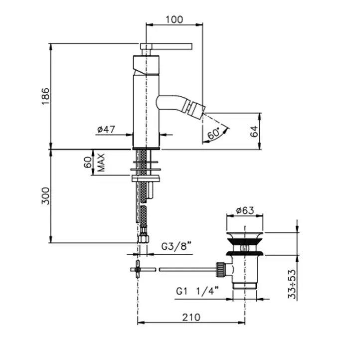 Nicolazzi Mac Kinley 05 Смеситель для биде на 1 отверстие, с донным клапаном, цвет: хром
