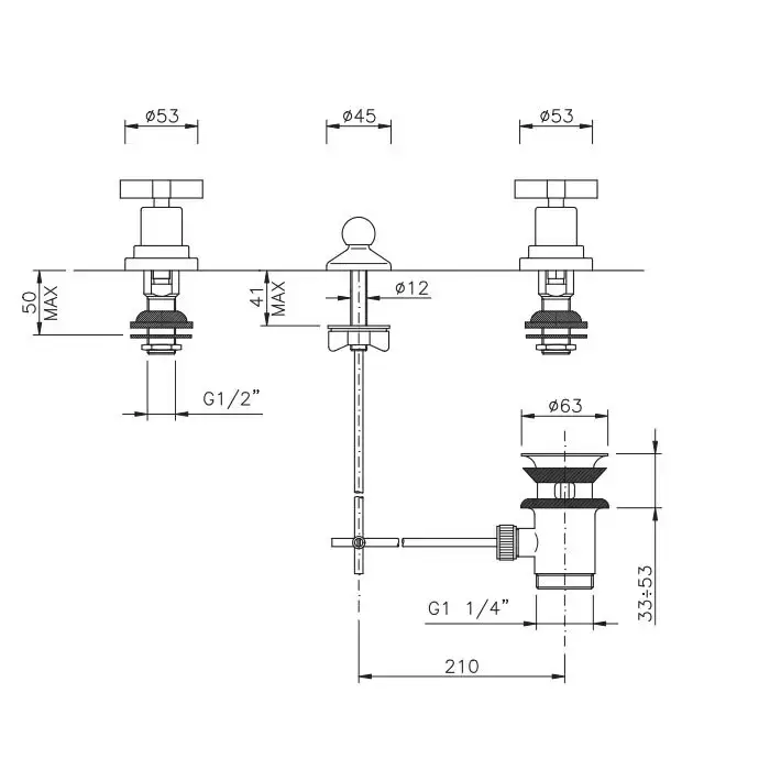 Nicolazzi Mac Kinley 05 Смеситель для биде на 3 отверстия, с 2мя ручками, с душиком, цвет: хром
