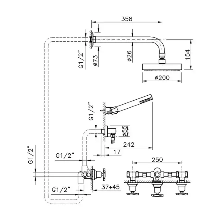 Nicolazzi Monte Croce Душевого набора, верхний душ 20см., смеситель, ручной душ, цвет: хром