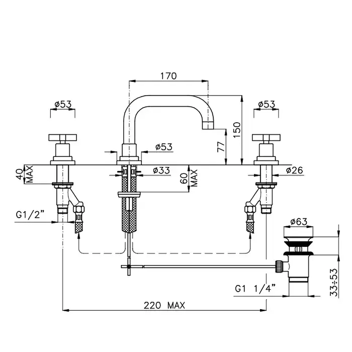 Nicolazzi Monte Croce Смеситель для раковины на 3 отверстия, с донным клапаном, цвет: хром