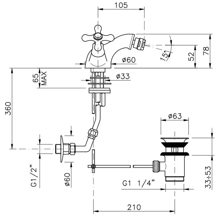 Nicolazzi Nuova Brenta Смеситель для биде на 1 отверстие, излив: 105мм, с донным клапаном, цвет: хром