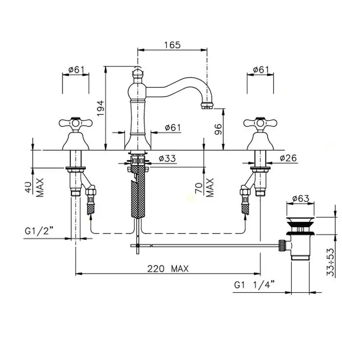 Nicolazzi Nuova Brenta Смеситель для раковины на 3 отверстия, с донным клапаном, излив: 165мм, цвет: бронза