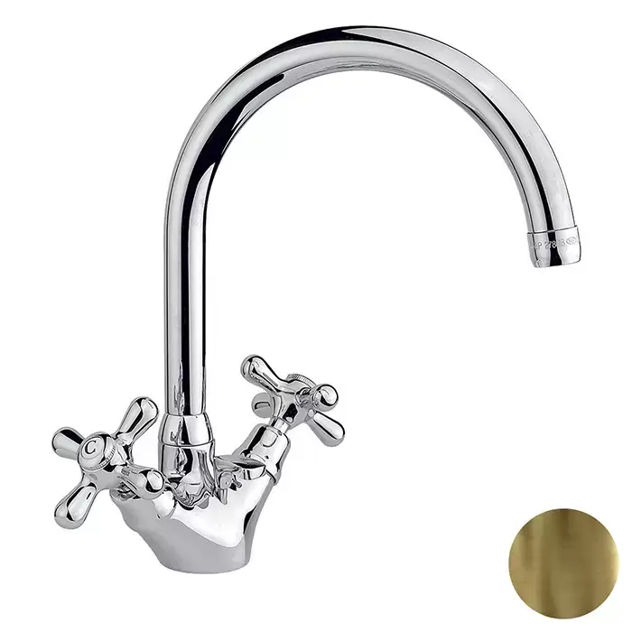 Nicolazzi Nuova Brenta Смеситель для раковины с 2мя ручками, поворотный излив: 190мм, с донным клапаном, цвет: бронза
