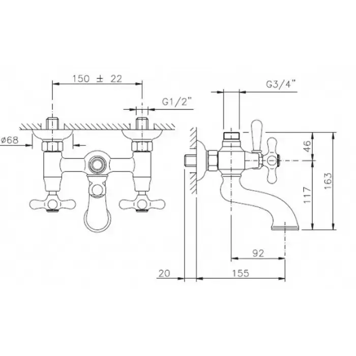 Nicolazzi Nuova Brenta Смеситель для ванны, с переключателем ванна/душ, вывод сверху 3/4" (для душ. стойки), цвет: хром