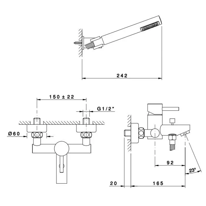 Nicolazzi Olympus Смеситель для ванны на 2 отверстия, с душевой лейкой, цвет: хром
