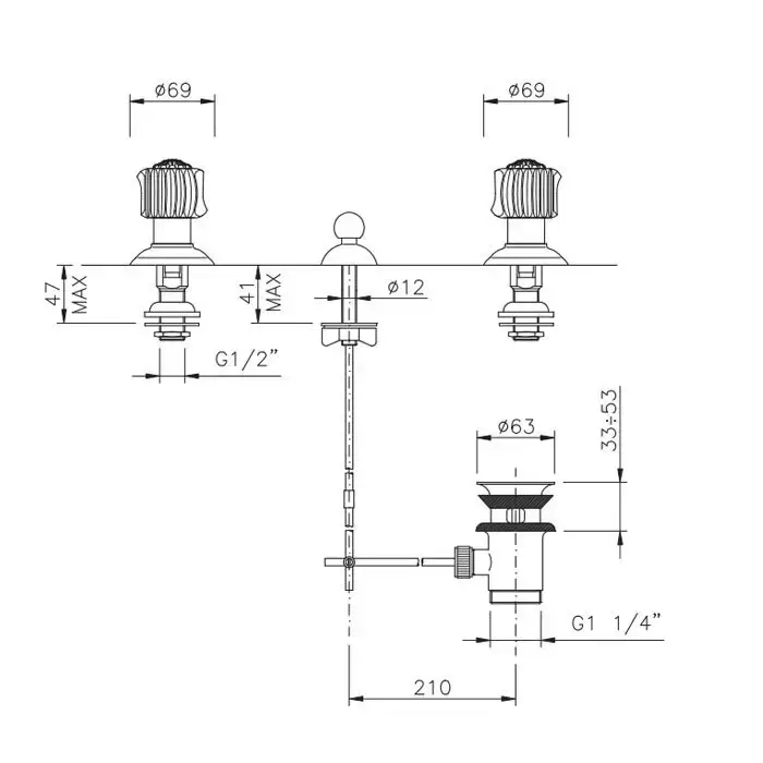 Nicolazzi Onice Смеситель для биде с 2мя ручками, на 3 отв., цвет: золото