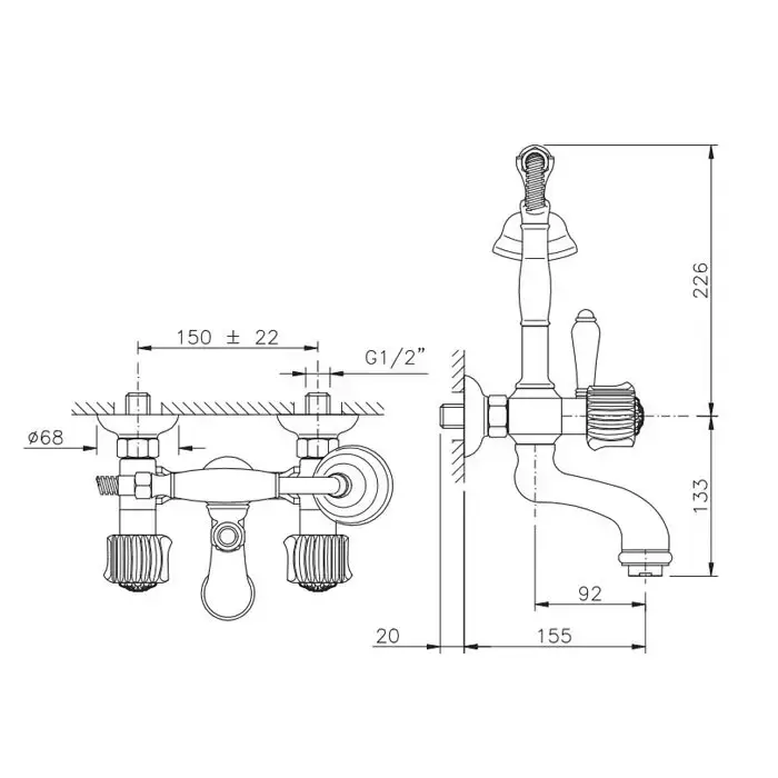 Nicolazzi Onice Смеситель для ванны с 2мя ручками, с переключателем ванна/душ, цвет: золото