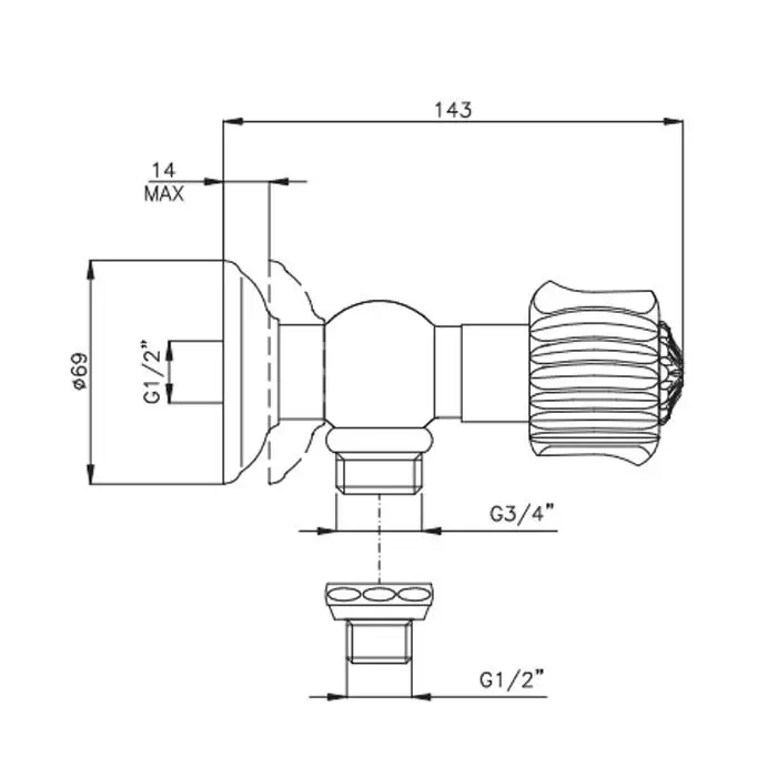 Nicolazzi Onice Запорный вентиль 1/2 вкл. внутр часть, цвет: хром