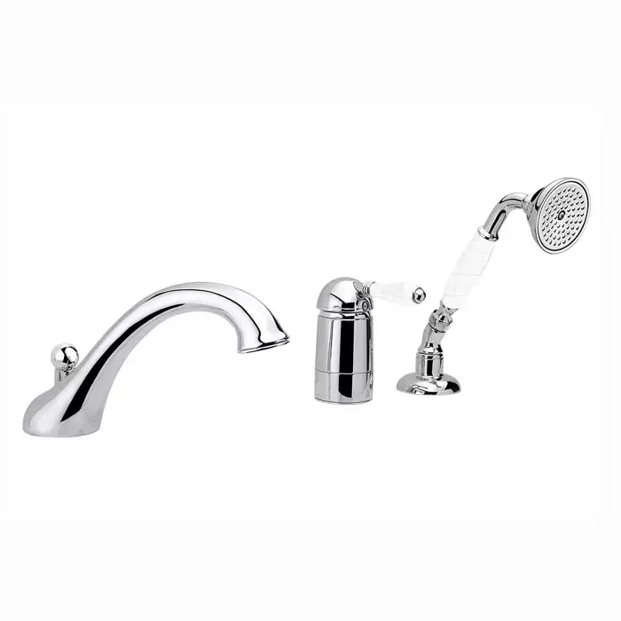 Nicolazzi P.m. Blanc A Смеситель на борт ванны на 3 отверстия, с изливом 200мм и ручным душем, ручки состаренная керамика, цвет: хром