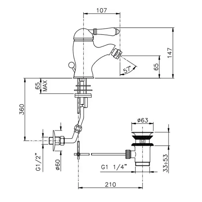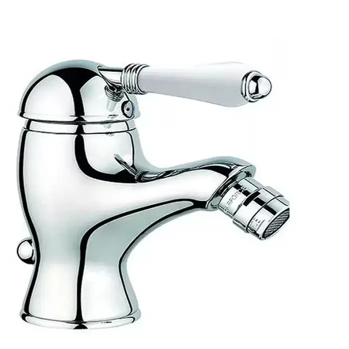 Nicolazzi P.m. Blanc Смеситель для биде, на 1 отв, с донным клапаном, излив: 107 мм, ручки белая керамика, цвет: хром