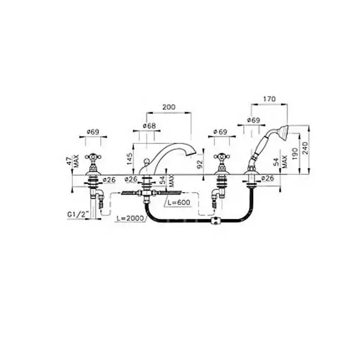 Nicolazzi P.m. Blanc Смеситель для душа, встраиваемый, излив: 160мм и ручным душем, ручки белая керамика, цвет: тёмная бронза