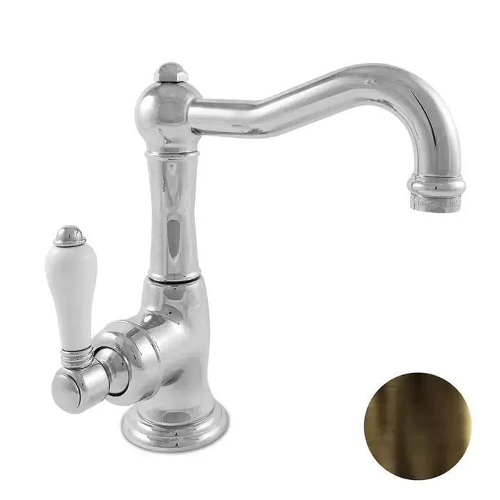 Nicolazzi P.m. Blanc Смеситель для раковины, с донным клапаном, ручки белая керамика, цвет: тёмная бронза