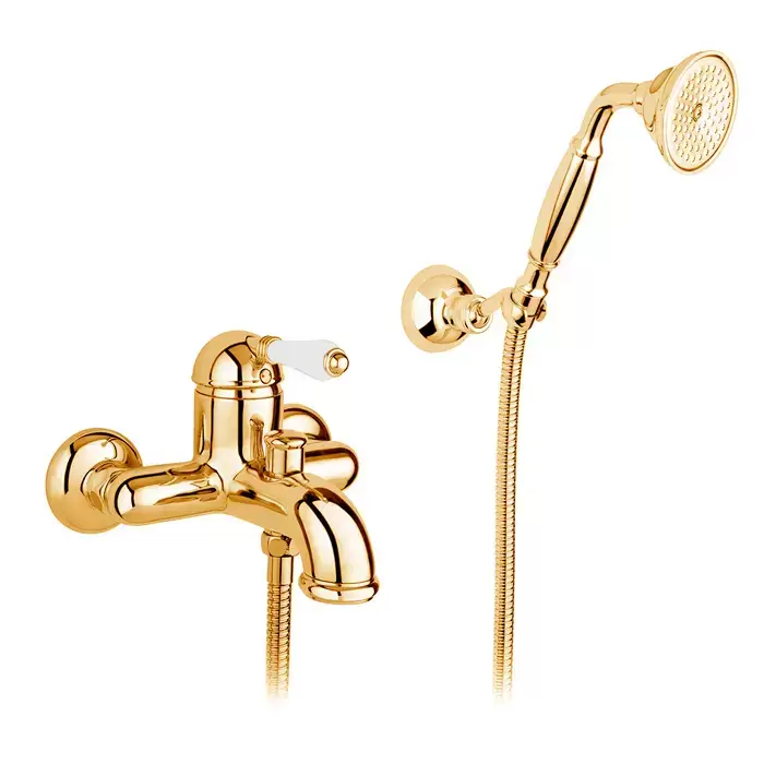 Nicolazzi P.m. Blanc Смеситель для ванны однорычажный, настенный, с ручным душем, ручки белая керамика, цвет: золото