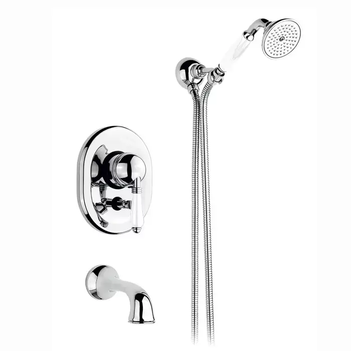 Nicolazzi P.m. Blanc Смеситель для ванны однорычажный, встраиваемый, с изливом 160мм и ручным душем, ручки белая керамика, цвет: хром