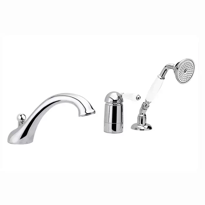 Nicolazzi P.m. Blanc Смеситель на борт ванны на 3 отверстия, с изливом 246мм и ручным душем, ручки белая керамика, цвет: хром
