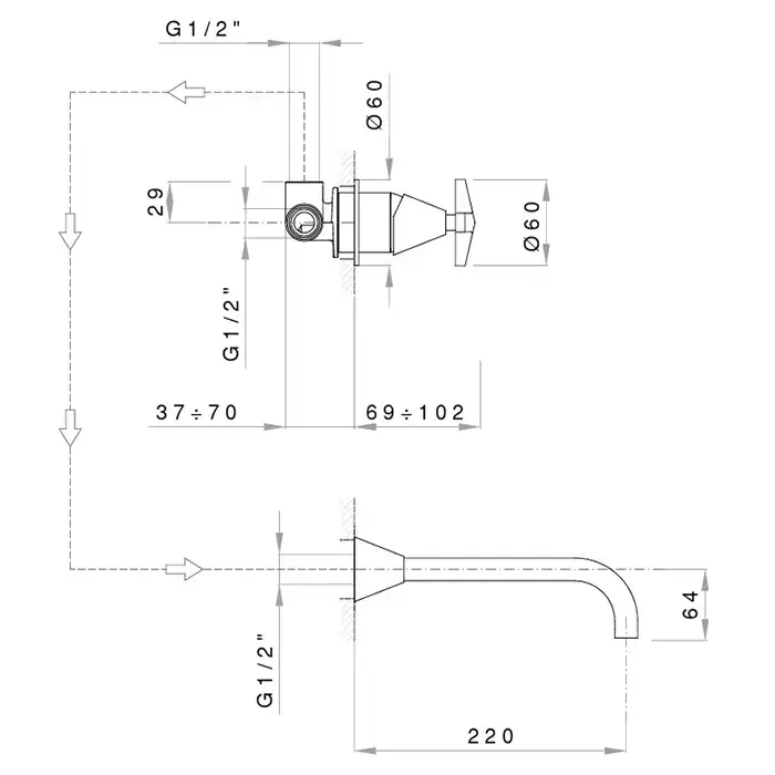 Nicolazzi Star Смеситель для раковины, встраиваемый, излив: 22см., цвет: хром