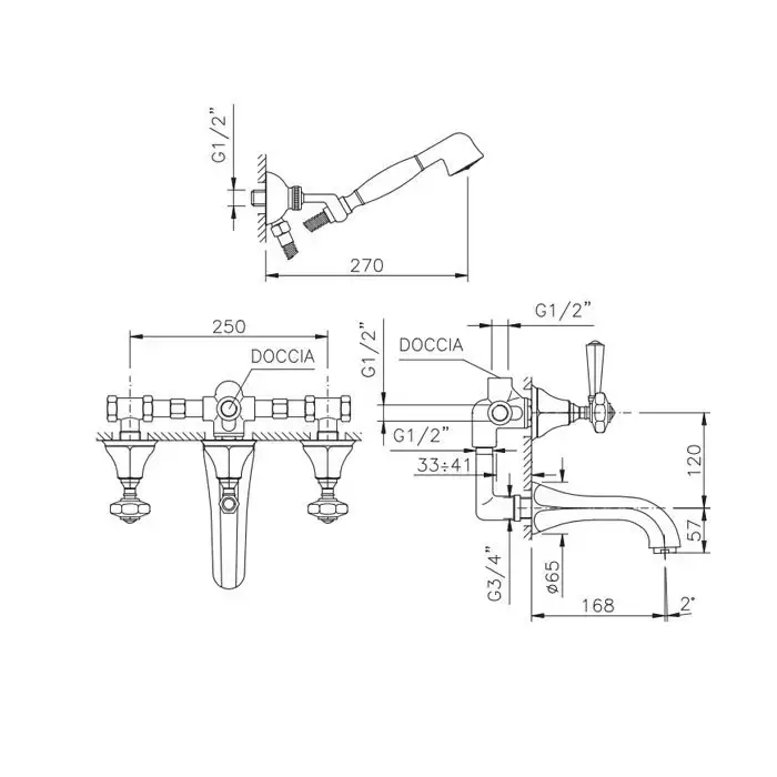 Nicolazzi Teide Chic Смеситель для ванны с 2мя ручками, встроенный, с ручным душем, вкл. внутр часть, излив: 168 мм, цвет: золото