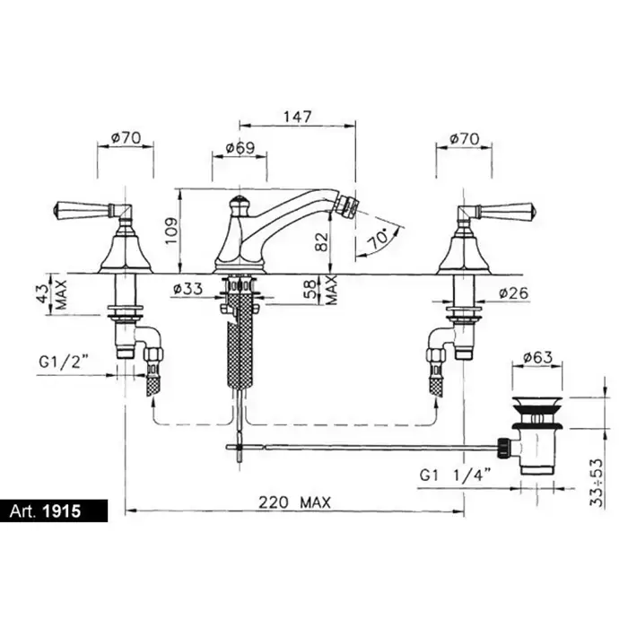 Nicolazzi Teide Смеситель для биде, на 3 отв., в комплекте с донным клапаном, цвет Gold