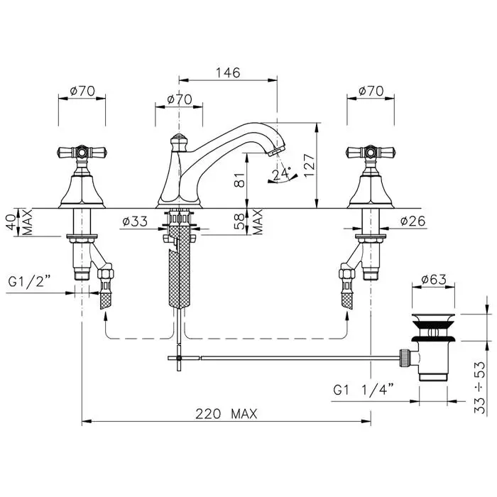 Nicolazzi Teide Смеситель для раковины на 3 отверствия, с донным клапаном, цвет: хром
