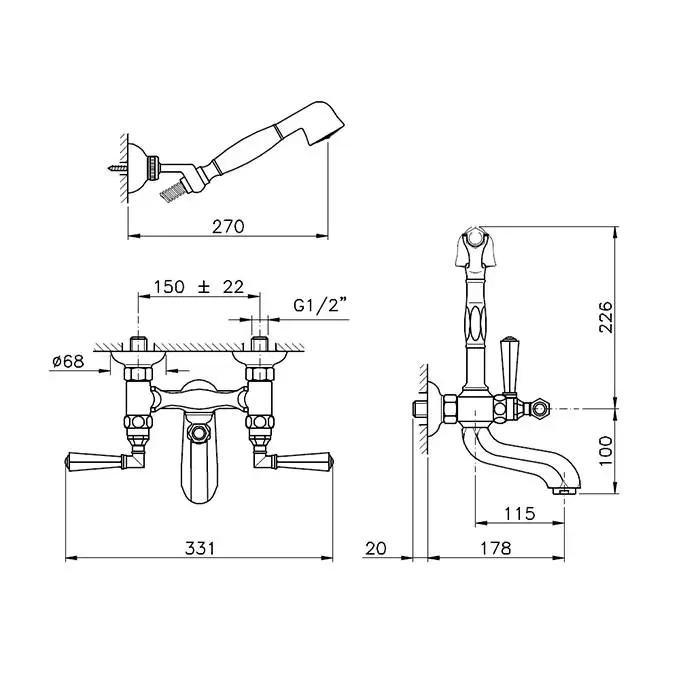 Nicolazzi Teide Смеситель для ванны, настенный, с ручным душем, цвет: Gold Brass