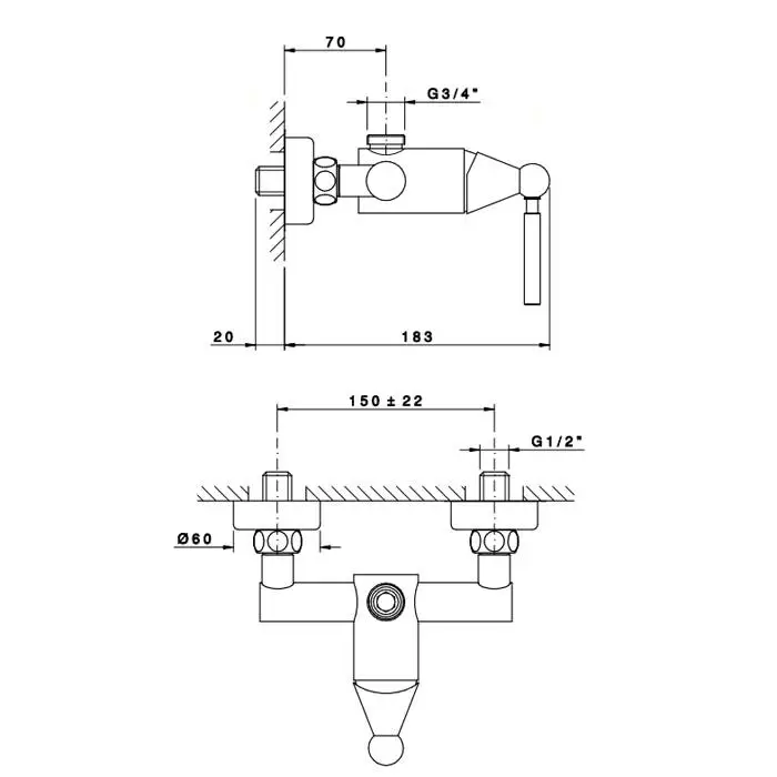 Nicolazzi Torre Смеситель для душа на 2 отверстия, вывод сверху 3/4", цвет: хром
