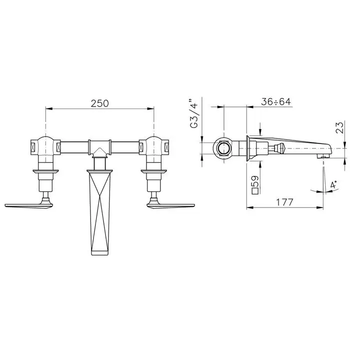 Nicolazzi Vincent Смеситель для раковины настенный, на 3 отв, излив: 177мм, цвет: хром