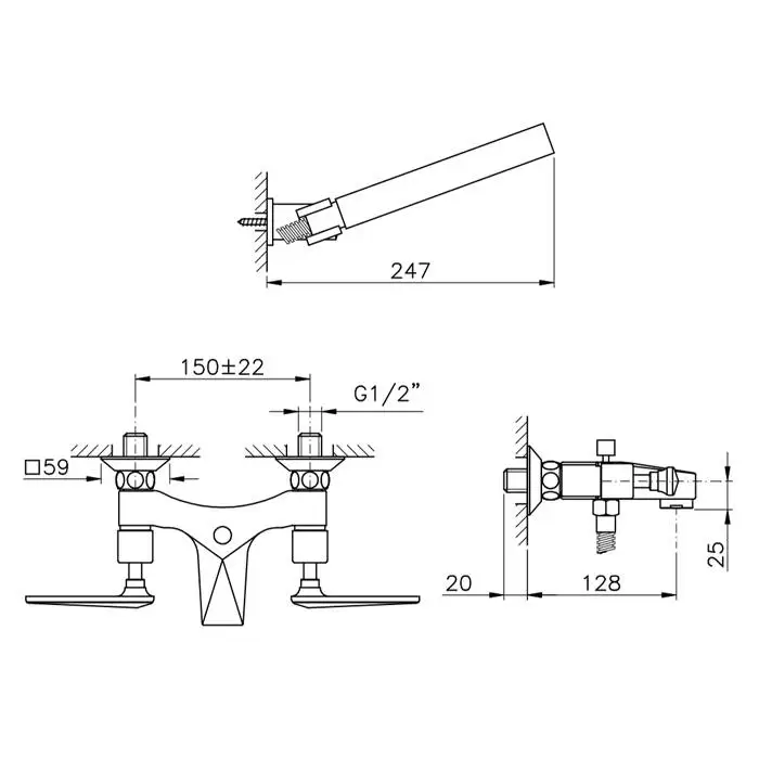 Nicolazzi Vincent Смеситель для ванны с 2мя ручками, с переключателем ванна/душ, + комплект руч. душа, цвет: хром