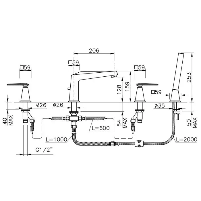 Nicolazzi Vincent Смеситель на борт ванны, 4 отв., излив: 206 мм, с ручным душем, цвет: хром