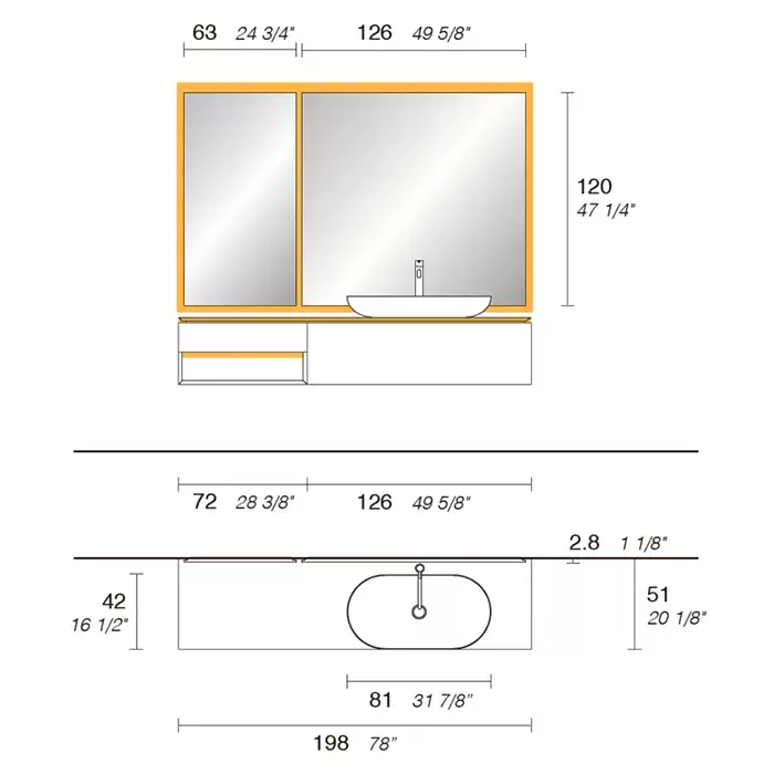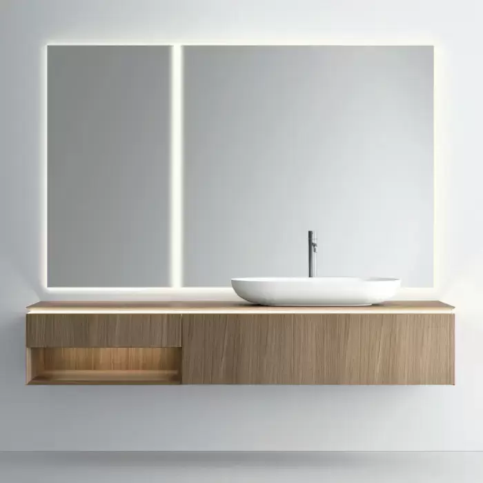 NOORTH milldue edition PURO Комплект мебели 198см в матовом шпоне, с раковиной из Cristalplant, 2-мя зеркалами с подсветкой, подвесной, Цвет: rovere miele-7676