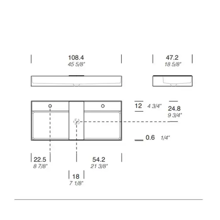 NOORTH milldue edition Раковина 108.4х47.2х12 см, 2 отв., двойная, накладная, цвет: белый