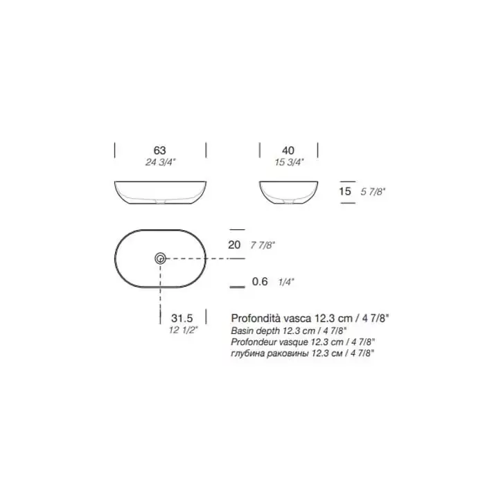 NOORTH milldue edition Раковина 63х40х15 см, без отв., накладная, цвет: белый