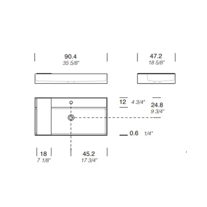 NOORTH milldue edition Раковина 90.4х47.2х12 см, 1 отв., накладная, цвет: белый