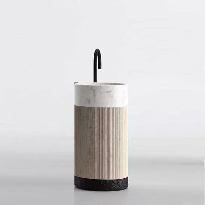 NOORTH milldue edition ROMA Раковина 45х88 см, без отв., напольная, без перелива, с донным клапаном, цоколь Ardesia, цвет: Moka Cream/Bianco Carrara