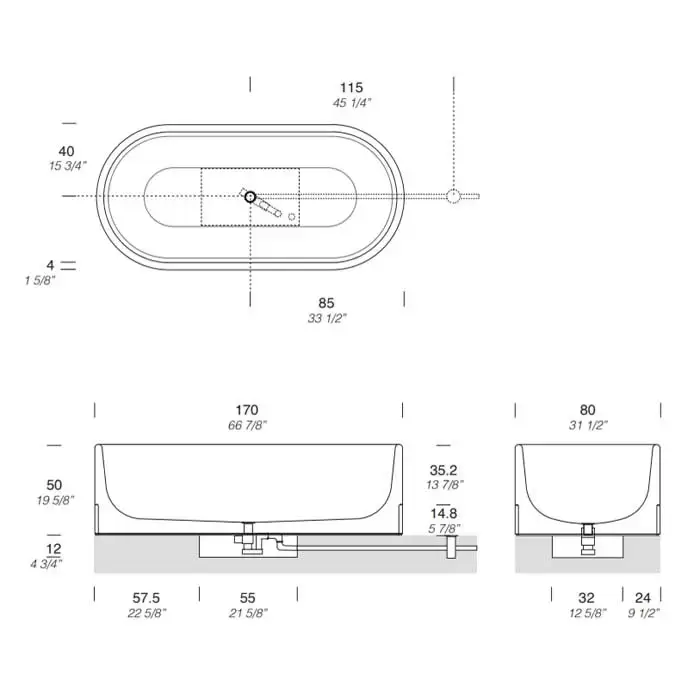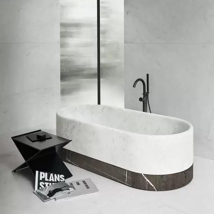 NOORTH milldue edition ROMA Ванна отдельностоящая 170x80хh50см, без перелива, с сифоном, цоколь Grafite, цвет: Bianco Carrara