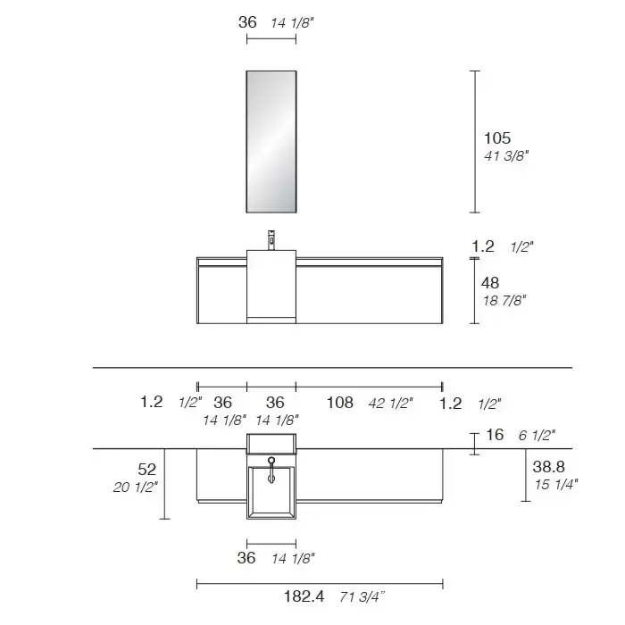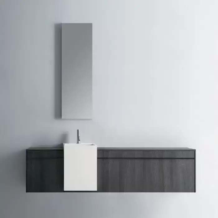 NOORTH milldue edition SINTESI Комплект мебели 180см, меламин, с раковиной из Milltek solid, полувстроенным зеркальным шкафчиком, подвесной, Цвет: Venato fumo-723