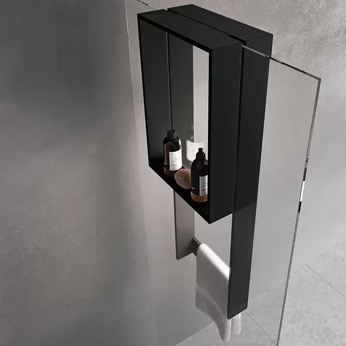 Novellini Kuadra Аксессуары для кабины 35х90cм., с внутренней полкой и внешним полотенцедержателем, для крепления на стекло, цвет: черный матовый