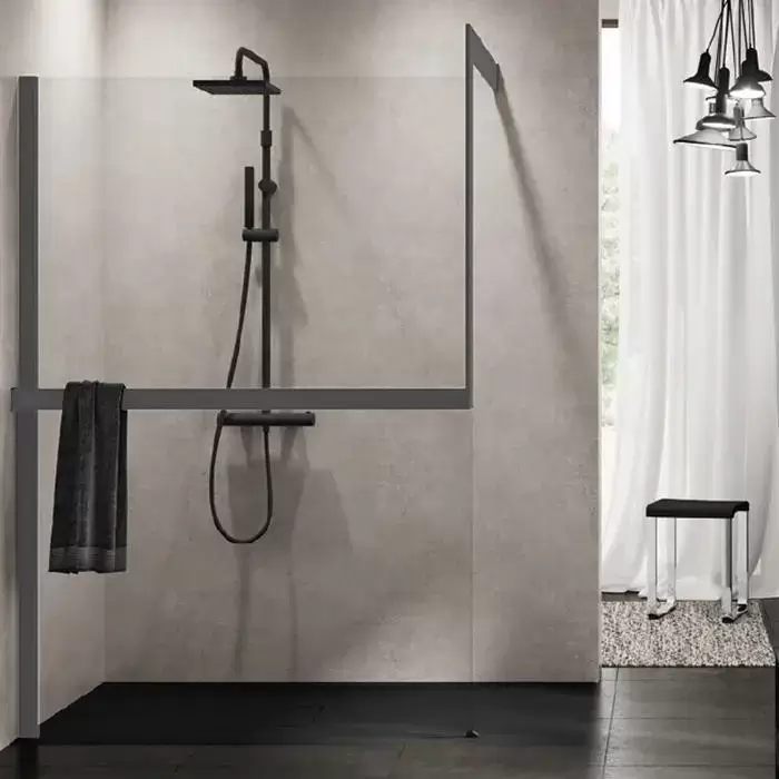 Novellini Kuadra H Душевое ограждение 160х205cм., с свободным входом, Sx, с настенным кронштейном, с полотенцедержат, стекло прозрачное, цвет: Silver