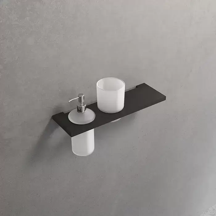 Novellini Kuadra Полка 30х9.7см., с стаканом и дозатором для жидкого мыла, цвет: черный матовый