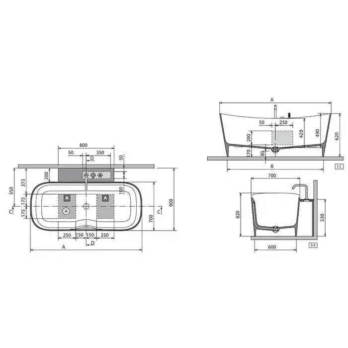 Novellini Ship Ванна отдельностоящая 160х70х62см., с донным клапаном click-clack, novotech, цвет: белый матовый