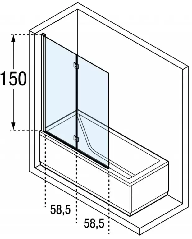 Novellini Young Шторка на ванну 120х151,6см., правая SX, стекло прозрачное, цвет: хром
