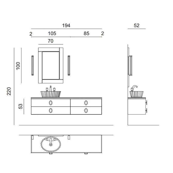 Oasis Daphne Композиция №30 Комплект мебели подвесная, 194х52.5хh220см, цвет: metallic Prosecco/золото