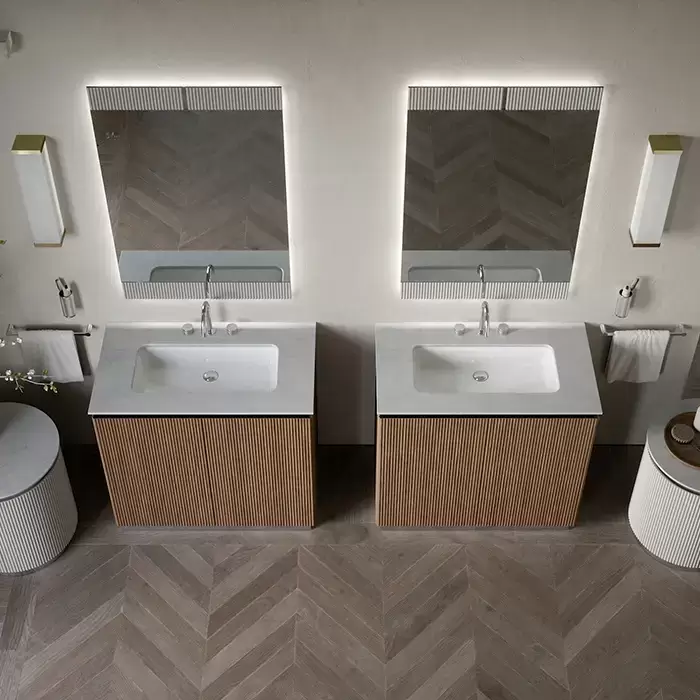 Oasis Naos Композиция №14 Комплект мебели 95х56xh85см, напольный, мраморный топ bianco carrara, цвет: орех трубчатый/хром