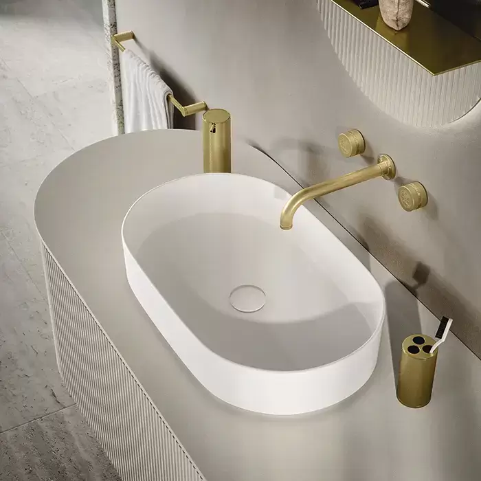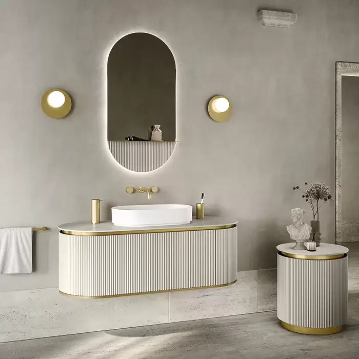 Oasis Naos Композиция №6 Комплект мебели 80х56xh45см, подвесной, мраморный топ, фурнитура латунь, зеркало, цвет: Corda elegance