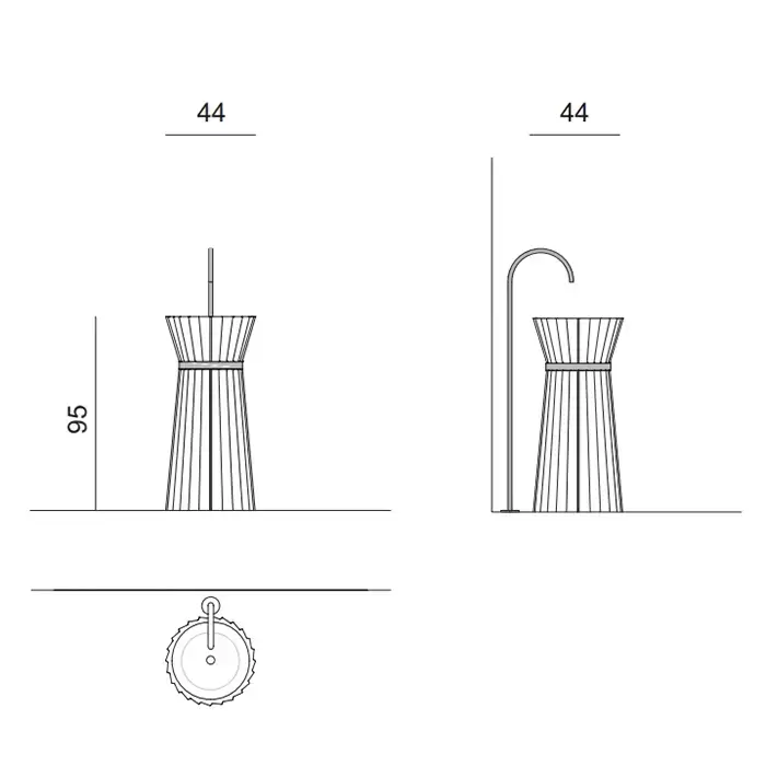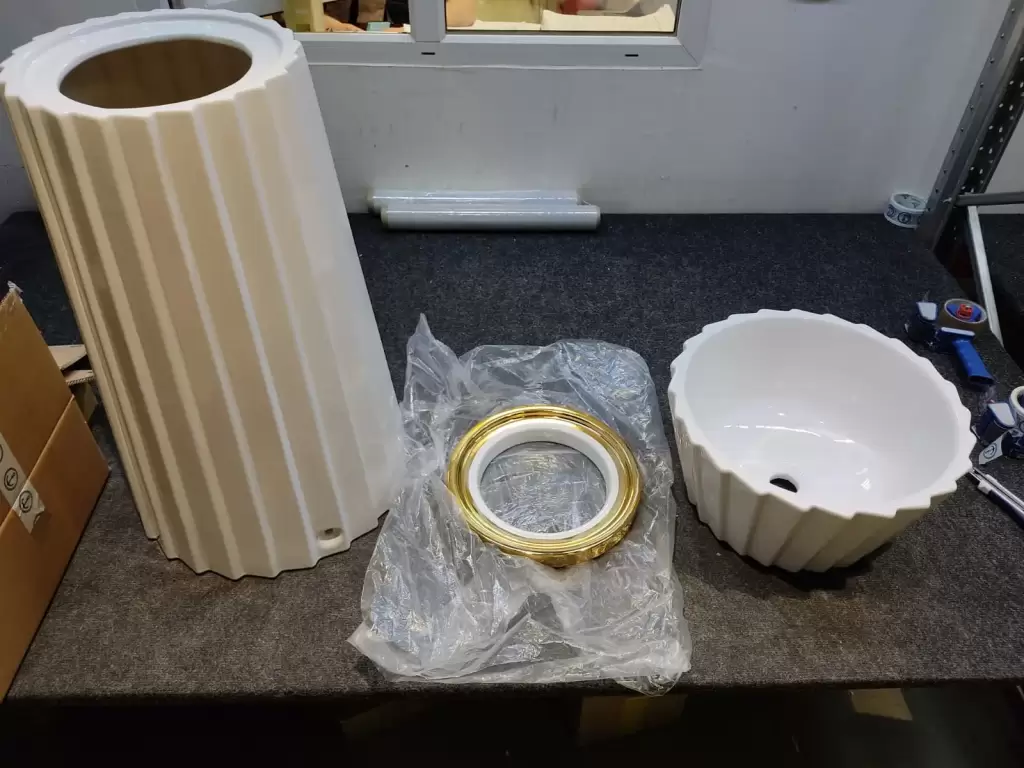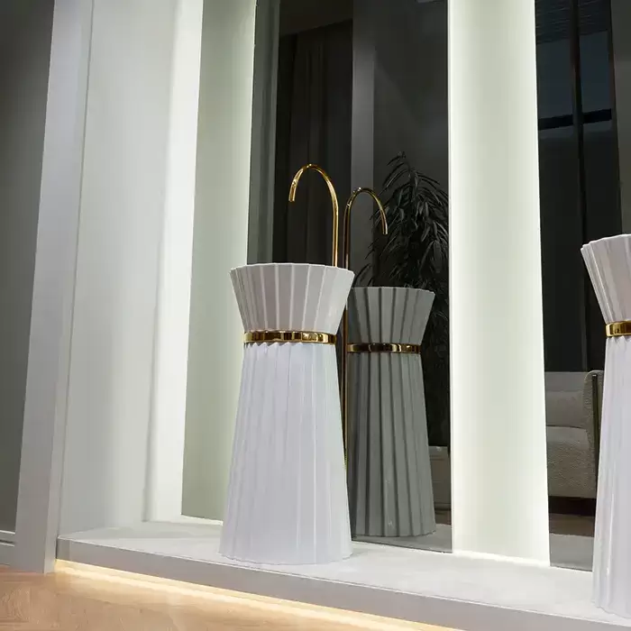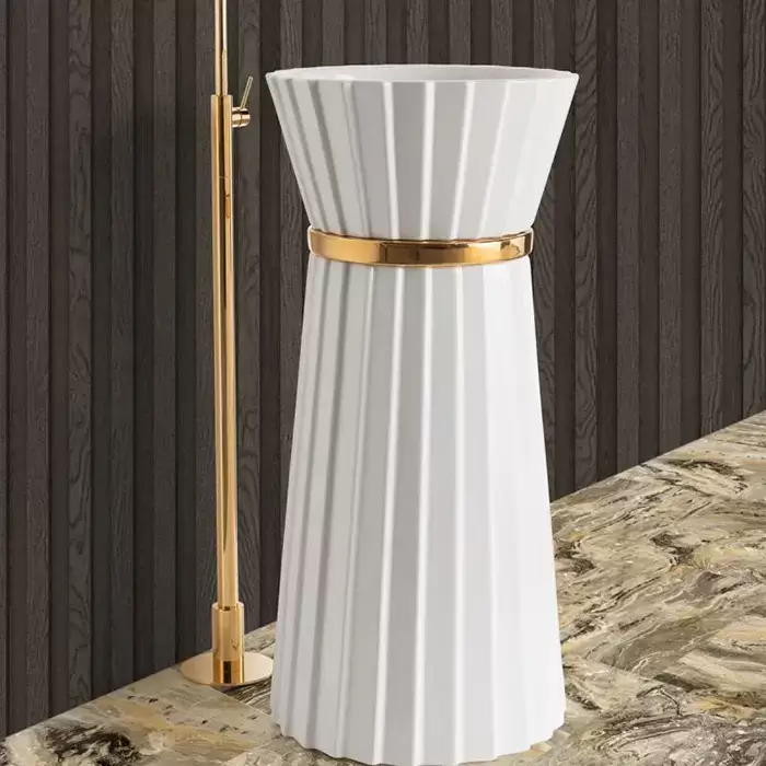Oasis Plissè Раковина 44x95 см, без отв., с донным клапаном и сифоном, цвет: золото/белый