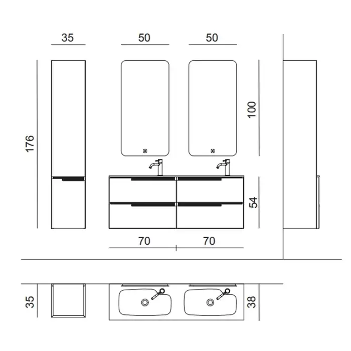 Oasis Profilo Композиция №19 Комплект мебели 140х38х h205см., подвесной, цвет: белый матовый/Хром