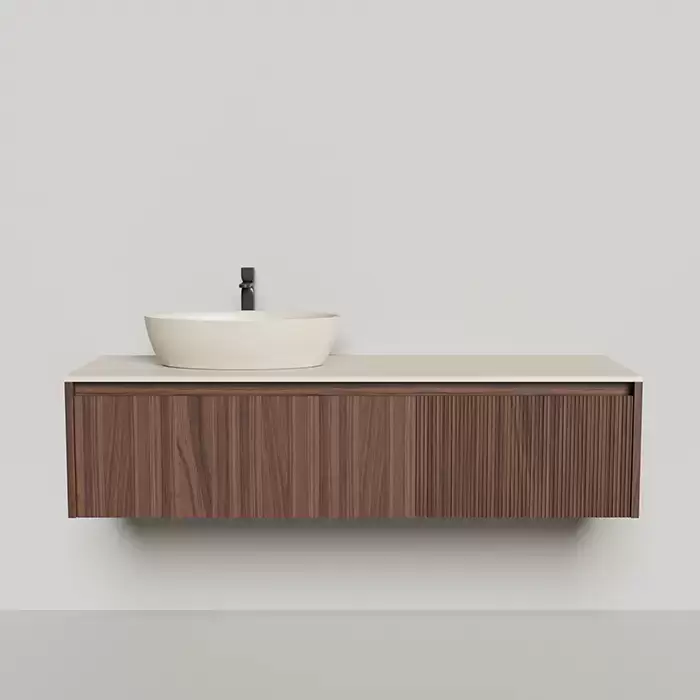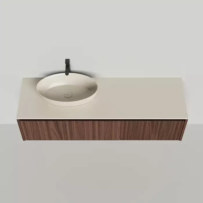 Salini Domino Тумба с накладной раковиной, 160х50х40см., из S-Stone в сборе, крепеж; сифон; фасад: шпон орех, столешница: Ral9001