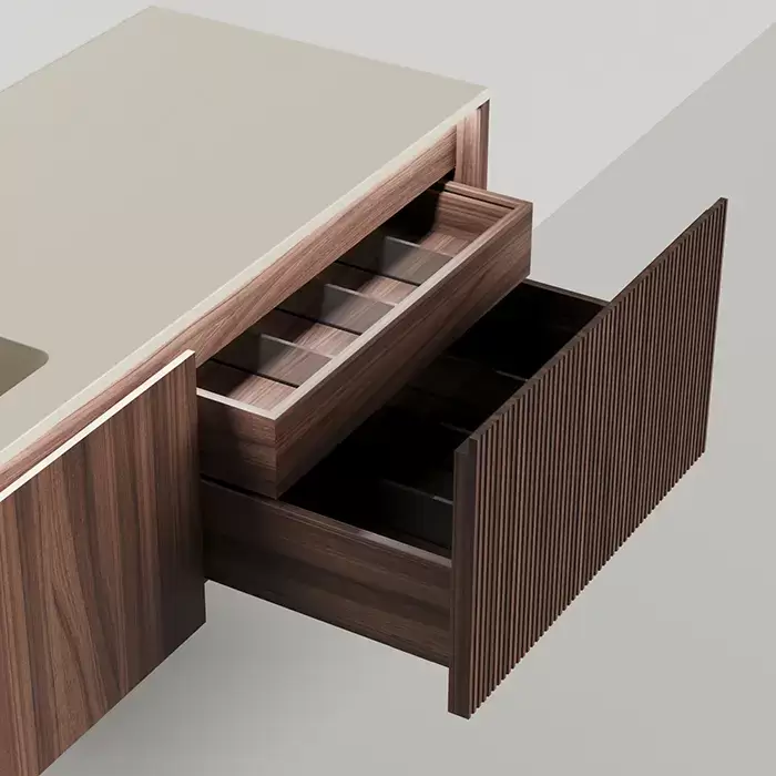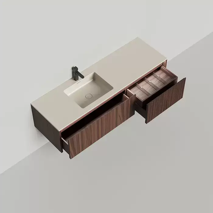 Salini Domino Тумба с раковиной, 140х50х40см., из S-Stone в сборе, д/к; крепеж; сифон; фасад: шпон орех, столешница: Ral9001