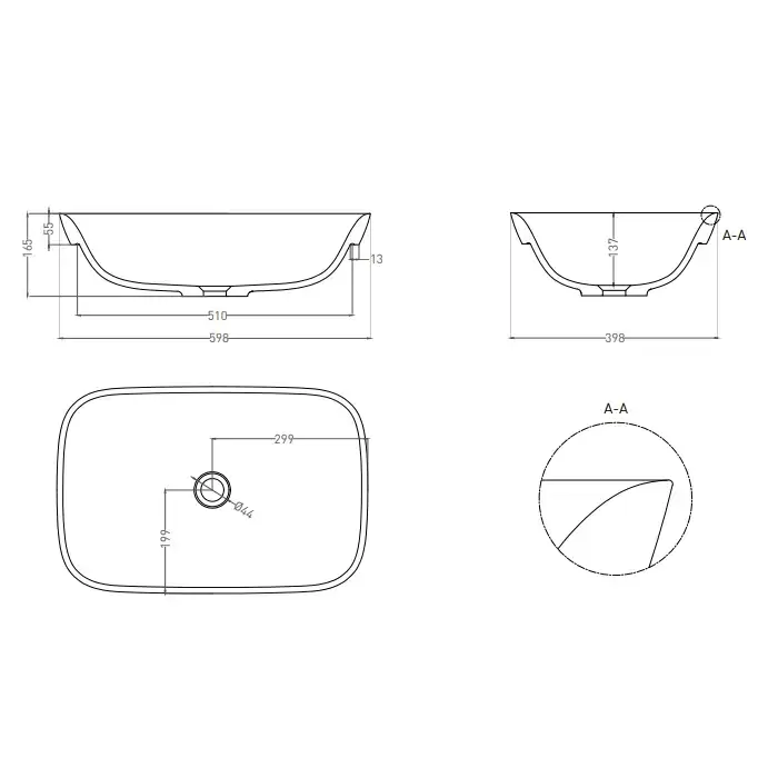 Salini Marea Раковина 60х40х17см., без отв., встраиваемая снизу, S-Sense, цвет: белый глянцевый